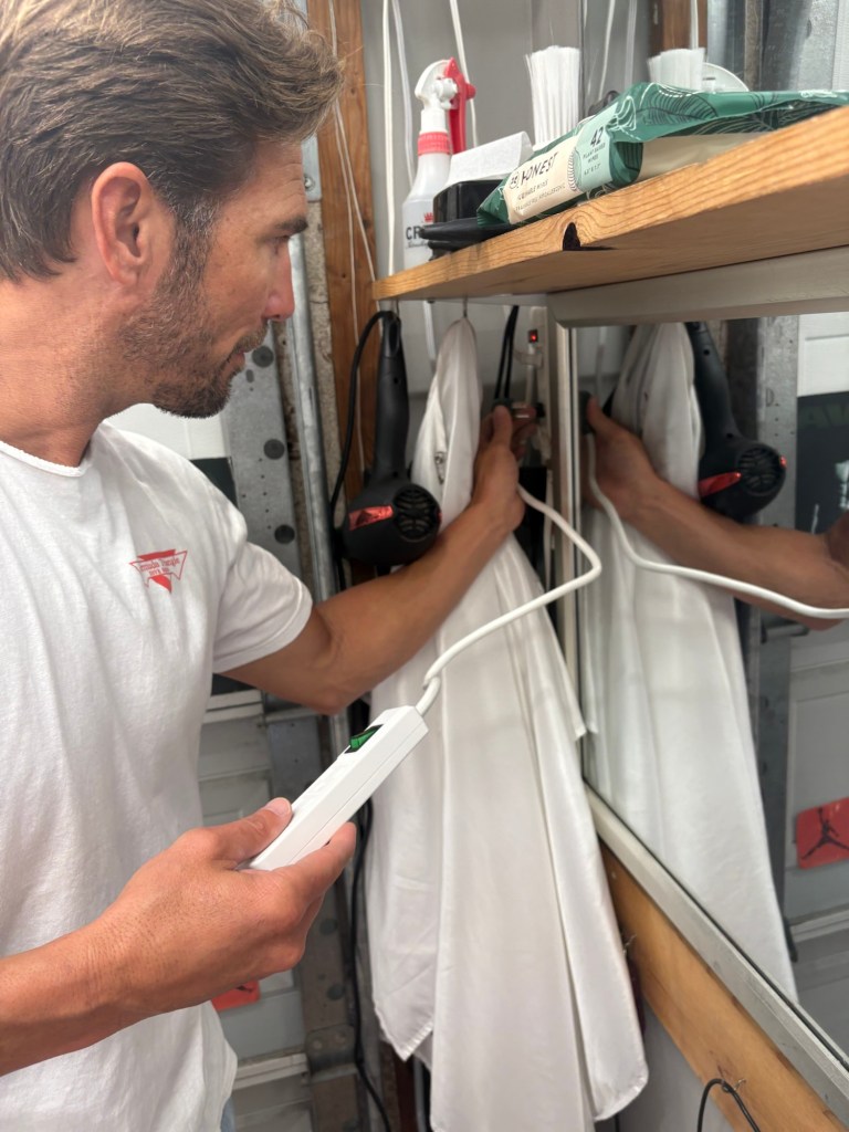 Me and Cory installing the smart strip in his garage barbershop